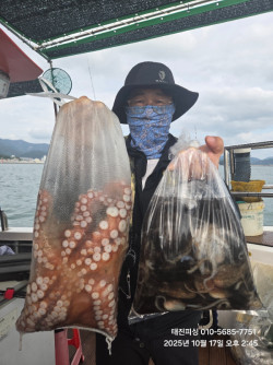 안녕하세요 삼천포 태진피싱 임선장입니다 ~꾸벅~ 오늘도 멋진 태진님 모시고 쭈꾸미 출조 다녀왔습니다 전원 푸짐하게 먹을만큼 손맛보시고 보너스로 갑이,돌문어 2,140kg 1수추가하고 철수 하였습니다 토,일 예약 완료이고 월요일부터 자리여유 억수로 있고 "선비할인" 이벤트도하니 ~~ "예약 및 스케줄보시고 많은 연락주세요 *예약 및 스케줄은 홈페이지에서 확인 가능합니다 "여기을 터치 해주세요^^http://taejin.sunsang24.com ^^선비할인/출항,입항시간^^ *평일/오전, 출항:06시30분~입항:14시30분 (선비:6만원/식사제공)*주말/종일, 출항:06시30분~입항:16시30분 (선비:8만원/식사제공)*예약문의: 010-5685-7751 임선장*비상연락처:010-8485-7751♡선 입금계좌 안내♡ 은행명: 농협 계좌번호:805-01-093444 예약주: 임종선 "선 입금시 예약이 완료됩니다" *자리는 출항30분전 "추첨입니다단 이틀 연속 출조 조사님은 우선적으로 자리 배정 됩니다 ^^주의 사항^^선장 도착전에는 절대 배에 탑승하시면 안됩니다 (계단이 미끄러워 진짜 워험합니다)"다치면 책임지지 않습니다 ^^ ^^쭈꾸미 채비^^ *쭈꾸미 전용대(연질)/합사1호*현광봉돌10,12,14,16호(주사용은12호)*쭈꾸미 전용에기:고추장,수박,주황색,빨강색 위주로 반응이 좋습니다 "필수:메가탄 고추장은색/고추장수박색 꼭 챙겨 오세요 ^^^^선사 제공^^점심식사/생수/커피/ 컵라면/ 캔음료/스낵바 ~~^^출항 사항^^출조인원 최소 5인이상 무조건 출조 합니다 (원도권은 8인이상)"출조 인원 미달시 선단 배 소개 ~~^^^^장비 대여^^낚시장비 없으신분은 무상으로 대여 해드립니다 (단 수장/파손시 원가 배상 됩니다) "합사 사용료 5천원 본인 부담 됩니다 [밴드 초대합니다] 삼천포 태진피싱 https://band.us/n/ aea202XaZb37B 밴드명을 검색해 가입할수 있습니다 >*** 삼천포 태진피싱 예약 안내 ***예약안내: 010-5685-7751 오시는길 : 경남 사천시 동금동 579-6홈페이지 : http://taejin.sunsang24.com/ ♡삼천포 태진피싱을 이용해주신 조사님 항상 고맙고 감사합니다 ♡♡